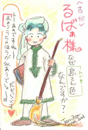 すばる劇場の、ルヴァ様コスプレ劇場から「古代ルヴァ様」です! デッキブラシを持って走るとこ、は難しかったので、とりあえずお掃除ルヴァ様。 でも、たしかに、ルヴァ様は赤じゃなくて緑よね、コスチューム。